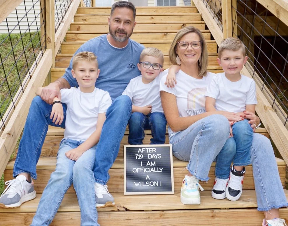 My husband and I, Scott, have 2 biological daughters who were both planning their weddings in the fall of 2020. Out of the blue, we had a long distance family friend reach out to us asking if we could take her 3 grandsons who had been placed into state custody. After much prayer my husband and I became licensed foster parents, so we could welcome these then 6,4 and 3 year old boys into our home. It became apparent shortly after that the biological parents would not be able to raise the kids, so we proceeded with adoption and here we are 2 1/2 years later as of 2022 we legally adopted our sons! My husband is such a role model for them, and is the best dad ever!